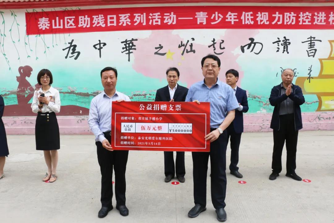 ? ? ? ? 本次活動中,泰安光明愛爾眼科醫(yī)院向省莊鎮(zhèn)羊樓小學(xué)捐贈價值伍萬元的眼健康資助,并為羊樓小學(xué)的全體學(xué)生進行眼健康檢查。
